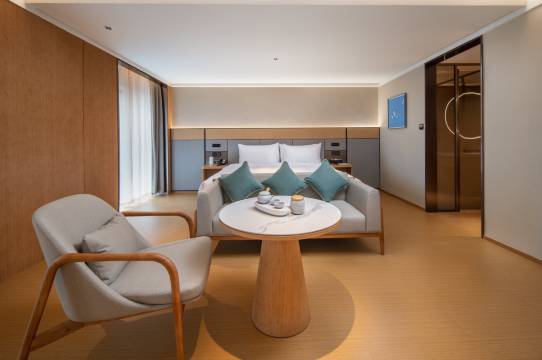 酒店房间设有无线高速网络、65寸东芝可投屏电视,电加热智能马桶及触控梳妆镜,还配有专属管家"小爱",呼叫小爱,让您尽享舒心的入住体验。