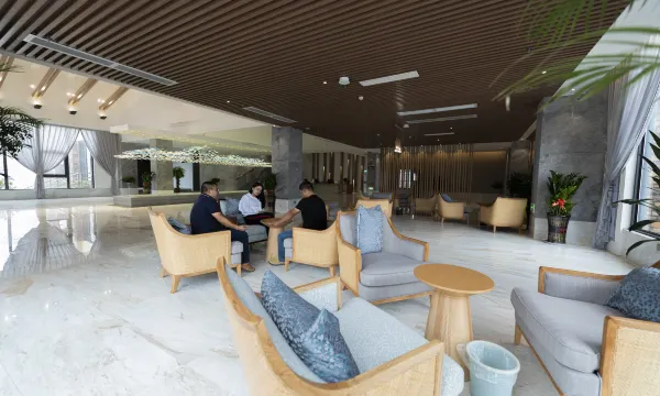 酒店依山傍水,空气清新,环境优美,负氧离子很高。室内房间干净整洁,安静舒适,现场工作人员服务态度很好,不怨其烦,有问必答。