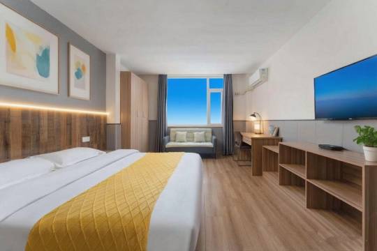 酒店很干净敞亮 住起来很舒服 楼下就是小吃街和超市 很方便 还有租车的地方 离高铁站也很近 附近就有浴场和景点 👍