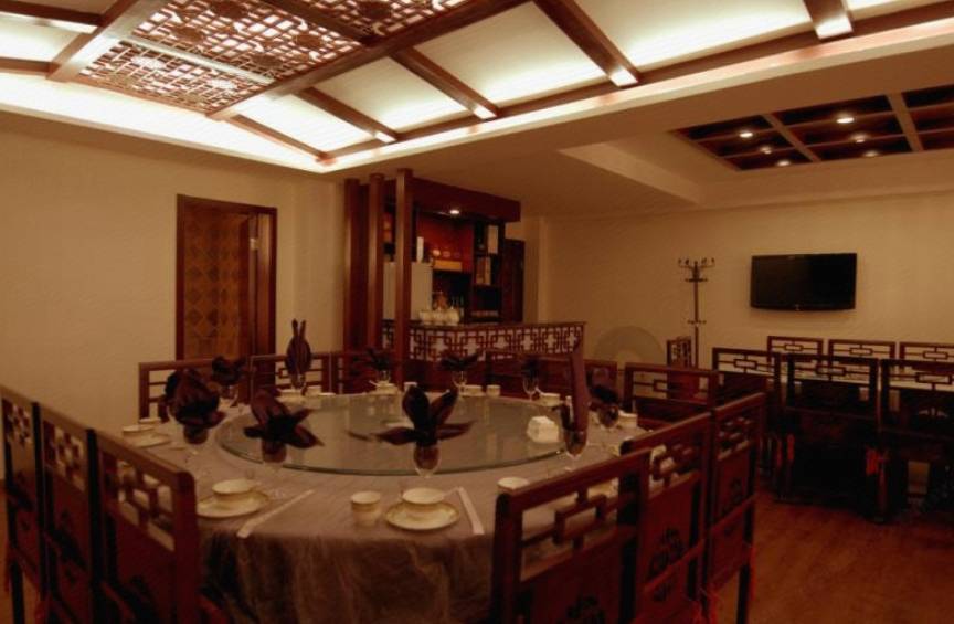 酒店内附设餐厅,以川菜为主,宾客可品尽各色牛杂汤锅、火锅鸡与火锅鱼。庭院内布置以花园、石桥、假山和喷水池,古色古香,使宾客品味宜人的山水景致的同时,体验舒适与愉悦,尽享一夜酣眠。