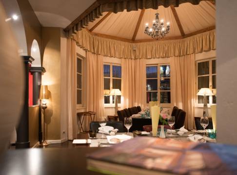 非常好的入住体验。酒店就在湖边,房间有露台,坐在露台看夕阳非常美。酒店很有艺术氛围,收藏很多收藏现代艺术画作和玻璃艺术作品。最喜欢的是泳池。一副和泳池一样长的山景照片,加上用不锈钢做成的无边泳池,给人一种在雪山脚下的湖里游泳的感觉。还有桑拿。健身房也很不错,健身设备齐全,空间也挺大的。早餐非常棒,随没有菜单,但你想吃什么,新鲜酸奶加水果,煎鸡蛋煮鸡蛋任你点,一大盘品种丰富的火腿,风干肉和各种奶酪非常齐全,平时吃自助餐我都不会拿那么多,服务生却给上一大盘。搞得我们不好意思剩下,就多吃了两个面包,把所有肉片和奶酪夹着吃完。酒店位于小镇中心地段,周边有很多餐馆。游船码头也在附近。酒店也有自己的酒吧。