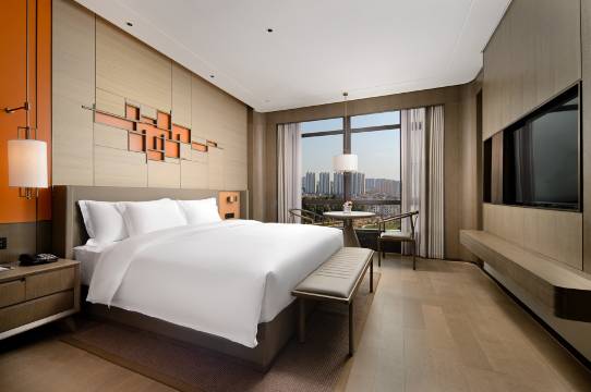 酒店拥有精心雕琢的现代化客房,融合了新中式气息和超凡的室内空间,在柔和的光晕中,诠释着素雅沉稳、舒适精致的居停体验,为繁华喧嚣的都市中心旅居者营造和缓的沉思休憩氛围,传递乐平独有的文化特色和创新精神。