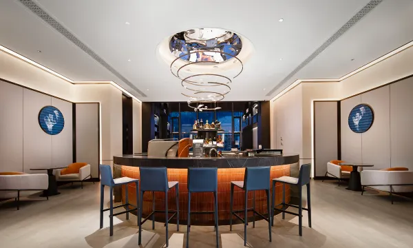 兰轩吧以书为设计灵感,通铺地暖,赋予空间节奏韵律。柔软的沙发座椅和靠枕均选用富有生气的颜色,让整个空间雅致、舒适。大堂吧提供新式爆款茶饮及精美下午茶,是宾客理想的社交聚会场所。