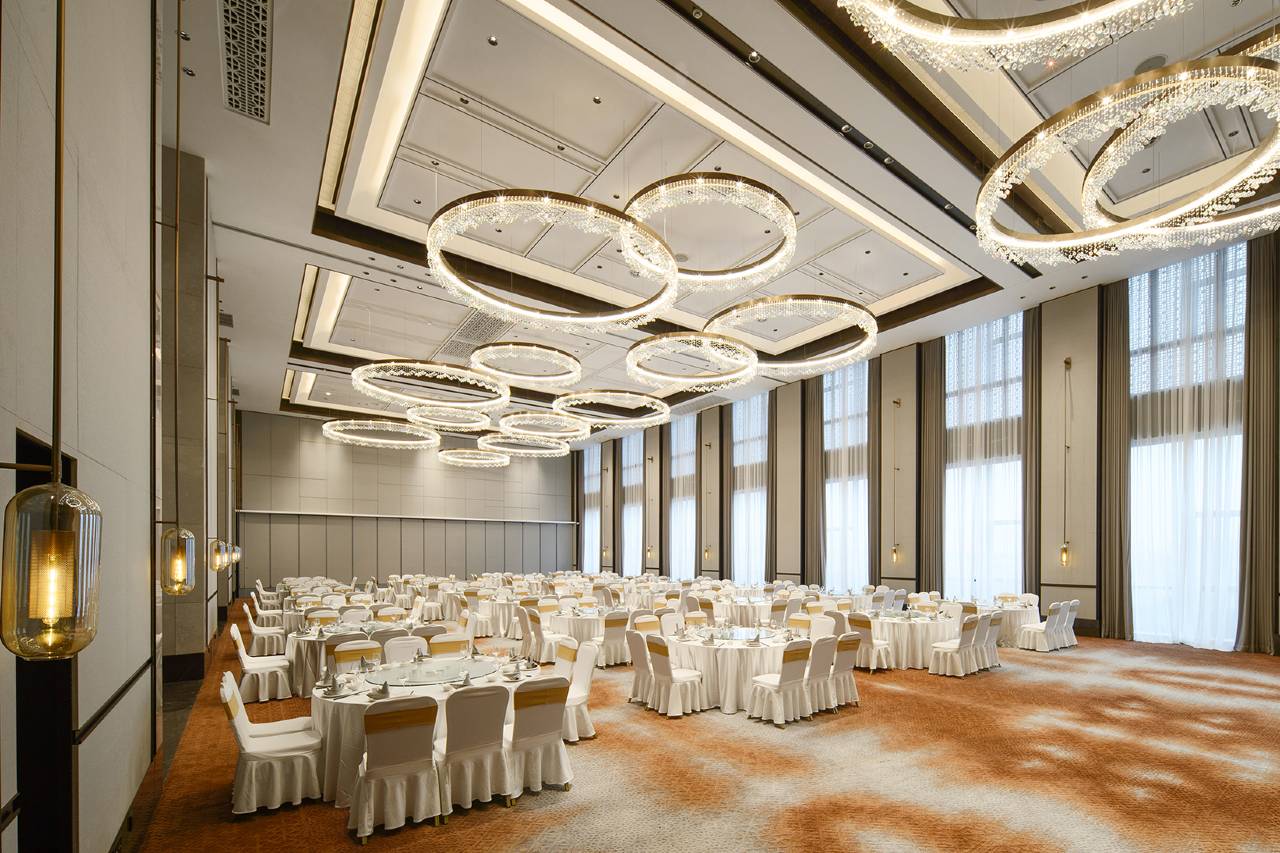 宴会及会议中心可容纳1500人会议及用餐、666平的无柱宴会厅和888平的无柱多功能厅及5个标准会议室,先进的视听系统,专业的会议服务团队,灵活多变的空间配以宽敞的休息区域,是高端商务会议、婚宴、年会及酒会的首选举办地。