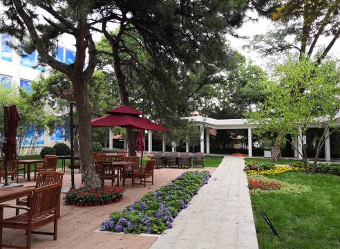 环境优美,园区内树木也很多,窗外景色也美