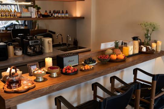 民宿小院可以体验楼顶山景大露台吹风观景,在禅意茶室起炉煮茶,围绕真火壁炉烤火闲聊,在独立水吧闲暇叙旧。