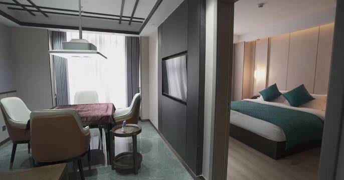 房间挺大的,干净卫生。整体感觉比较新,干湿分区,房间有智能管家。只是智能管家智能一键开全部灯,和关全部灯。位置不错,就在锦华酒店对面。房间楼下有茶楼,楼上有饭馆。有早餐。