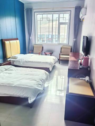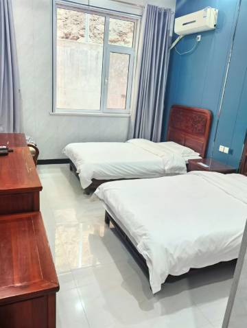 地理位置优越。离景区不远。房间新装修的,干净整洁卫生。停车免费方便。性价比高。老板小俩囗服务态度好,热情实在。早上起来去景区大门囗,老板还开车送我们过去。楼上住宿,楼下是他们自己开的饭店。饭菜口味不错,价位适中。不愧是央视“远方的家”节目组采访推荐的客棧!值得入住。好评!