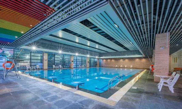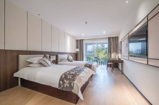 宾客可享受酒店内一系列设施与服务,园内有室内泳池、羽毛球、篮球等运动场馆和益智设施,可以开展多样的主题娱乐活动;园区特别设有25间临湖而立、不同格局的会议空间,最多可以容纳300人会议培训;配套相应规模自助餐厅和宴会厅,可承接不同规格用餐和宴请。