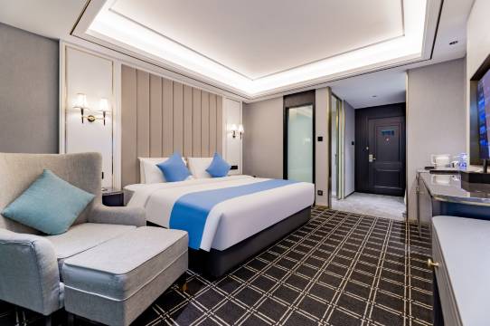酒店总建筑面积约15000㎡,是一家集客房、餐饮、会议、休闲为一体的综合型高端商务酒店。客房以豪华大床房、雅致大床房、豪华双床房、商务大床房、商务套房、温馨家庭房为主的同时精心打造女神浪漫尊享套房、女神大床房等8种不同房型,房型面积在35㎡到80㎡之间,充分满足商务接待及旅居的不同需求。所有房间床垫均选用慕思床垫,并配备智能客控系统、水净化系统、空气净化器、香薰加湿器、智能马桶及24小时零等待热水等设施设备。我们将健康及舒适的睡眠概念植入到运营服务中,使您在入住后可以满足高质量的睡眠体验。同时还免费为入住的客户提供下午茶、健身房及自助洗衣房等设施设备。