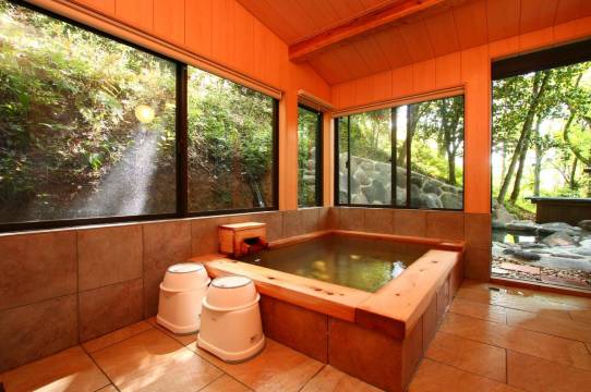 森林里的小木屋太棒了,还有私人和公共温泉!