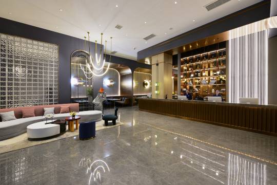 酒店的设计风格简约又高级,大堂的绿植和灯光氛围感拉满。房间干净宽敞明亮,设施方便,住起来挺好的,房型也挺好的 房间也是干湿分离,栀子水,酸梅汤,前台服务人员很好,非常热情,床品舒适 ,服务周到细节,在旅途中感觉也挺好的