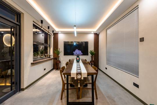 民宿位于泰山景区,距离红门登山口直线距离不足百米,背靠泰山,近虎山公园、王母池,交通便捷,置身于天然氧吧之中。门店内部公共空间超过400平方,超大露台方便好友共聚一堂,烧烤畅饮。夜晚可在露台或通过屋内天窗观看夜空,享受难得的休闲时光。整个民宿采用新中式装修风格,简约大气。房间类型多样,大床房、家庭房、套房应有尽有,设施齐全,所有房间全部为全屋智能化,满足各类客人的需求。房间配备榻榻米和茶具,让客人在房间内就可以品茗赏景,享受清雅静谧。