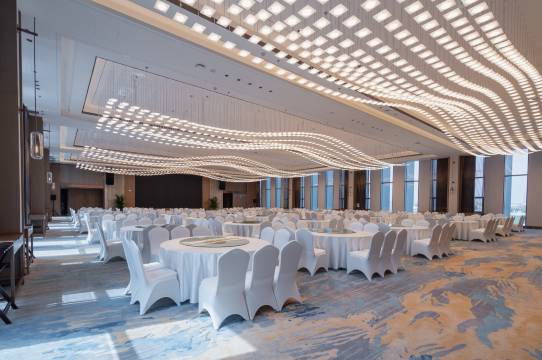 酒店配备了高标准智能化会议培训室服务设施,17间(容纳10-200人不等),引进先进的多媒体会议设备,创建了多种形式的多媒体会议室,可满足不同的会议培训需求。餐厅拥有一个可同时容纳460人就餐的多功能豪华宴会厅、5个豪华包厢、150个餐位的自助餐厅,能满足婚宴、会议、活动庆典等各类需求。酒店以精致淮扬菜及特色本帮菜为主流,以精湛烹任技艺和妙契众口为追求,再配以高雅格调,充分体现了“和、精、清、新”的独特理念。