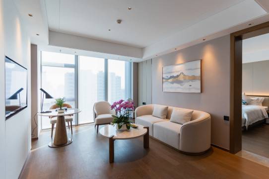 床品软乎乎的特别好睡,书桌和椅子的质感很在线,办公、休息都舒服。机器人送物、免费停车这些服务细节拉满,体验感直接拉满~