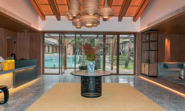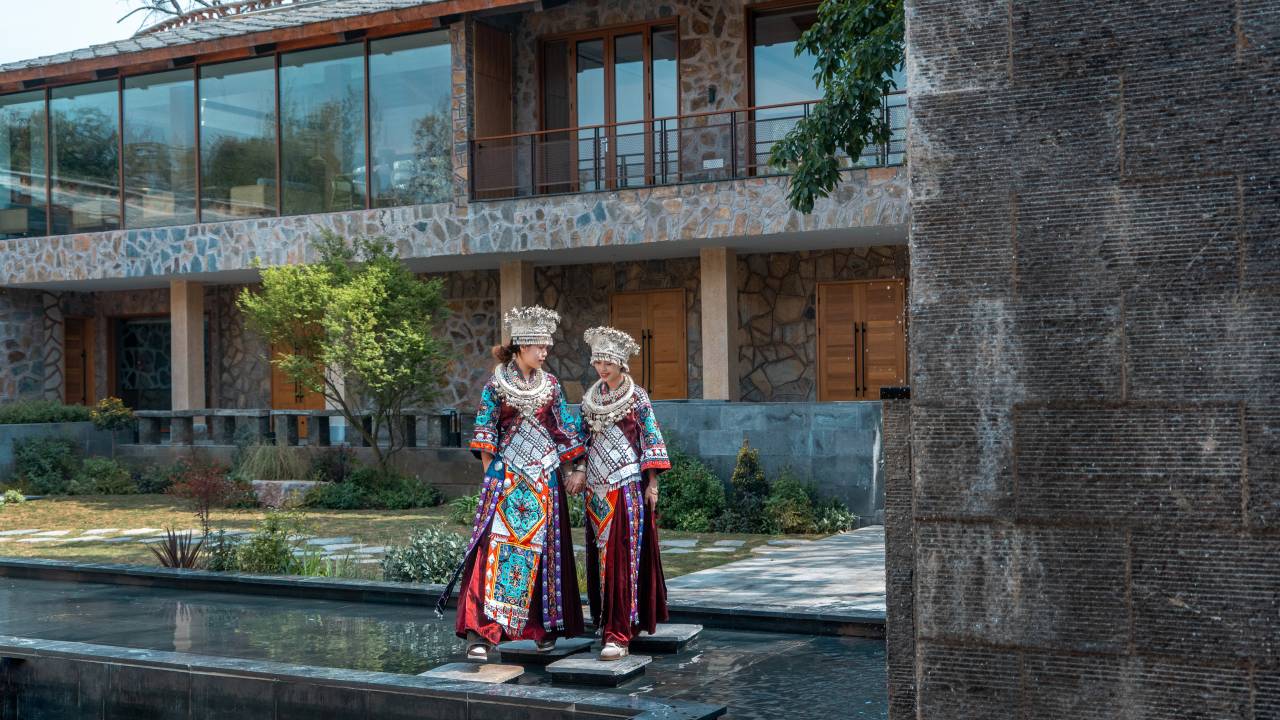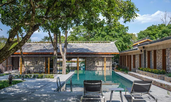 客房配备有私汤泡池、户外泳池、健身房、茶室、酒吧、棋牌等,设计上在原址原貌上加以修缮,建筑用材尽量使用当地材料,软装上我们秉承“回归质朴东方,唤醒文化的共鸣”为中心,以贵州安顺民俗文化特色为引申,在传统手工艺中寻找韵律美。