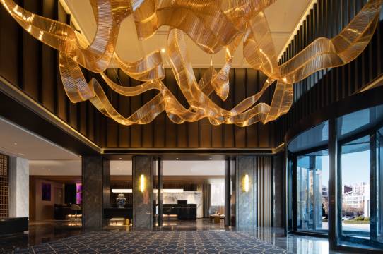 酒店大堂设计很高端,进门一股香香的氛围,酒店服务人员也很专业,办入住很快,有茶水,小零食供应,酒店设施很齐全,早餐也不错,总之体验感很好,挺推荐的