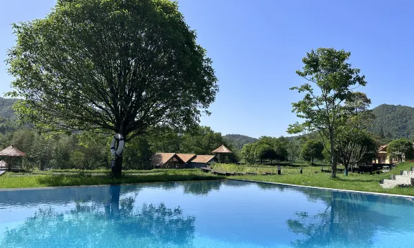 地方大,环境好,还有各种小动物,恒温泳池,很适合带娃撒野。就是餐食不方便,周边没有吃饭的地方,酒店按150元/位有点贵,并且菜式一般。