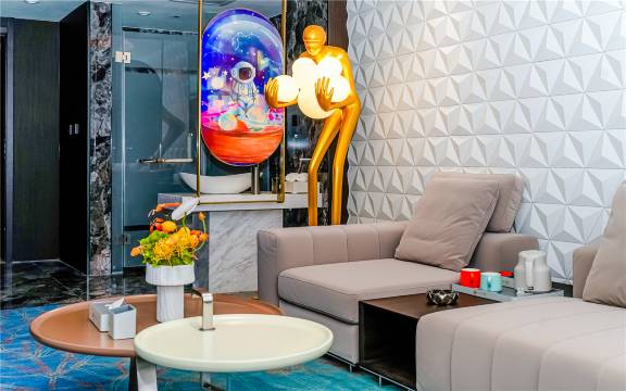 开车去其他城市出差返程,中途选择运城休息一晚,当时搜索查找酒店,看起来这个酒店非常舒适,看起来床具也很舒适,整体看看好像挺适合出差住宿,这酒店一层装修的好动漫感觉,五彩缤纷的,还能点鸡尾酒到房间小酌,停车场不大,但是能满足住宿停车的,体验不错