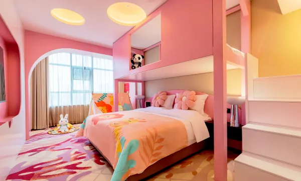 进门就被惊艳到了!大厅布置好可爱,客房电梯口,也布置的非常漂亮!有带娃的家庭,肯定很喜欢。房间全屋智能,有什么事呼叫小艺小艺就好,小艺帮你搞定一切。马桶也是智能的,坐圈不会凉PP,非常棒!