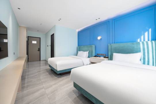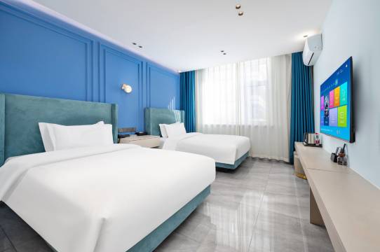 凌晨入住,前台很贴心给免费延时到了两点能多休息一会,房间温馨干净无异味,枕头有软有硬,能选自己喜欢的,洗漱还有润肤露这点很贴心。晚上走廊很安静,没有噪音。