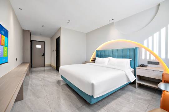 房间很大,卫生干净整洁,床品也很干净无异味,睡觉很安静,楼下停车很方便,酒店周边吃饭很方便,酒店前台接待服务态度很好