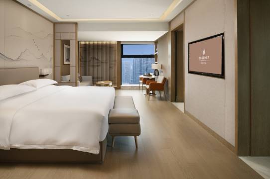 房间比想象中更宽敞,落地窗视野超棒,床品柔软得像睡在云朵上,一觉到天亮。卫生间干湿分离做得很好,卫浴用品都是知名品牌,细节处处显品质。最喜欢那个智能马桶,冬天坐上去暖暖的很舒服。