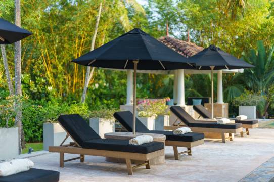 您的别墅有着特色装修,配备冰箱和微波炉,让您可以尽情放松享受。您的加厚层床配有羽绒被和埃及棉床单。独享私人阳台。提供免费有线和无线网络,此外还配有带有线频道的 75 英寸平板电视,可满足您的娱乐需求。卫生间配备了带有大花洒淋浴喷头的淋浴设施和**洗护用品。