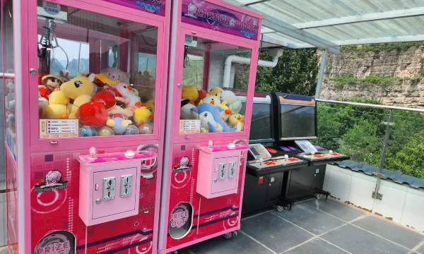 看来是新装修,但完全感觉不到异味,估计装修也挺下功夫了。个人最喜欢整体环境设计合适和孩子,露天的顶楼很惬意。还有孩子玩儿的抓娃娃机游戏机。小冰箱里的饮料零食免费吗?