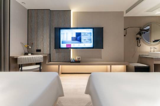 酒店住的非常舒适,去年刚开业的,装修偏轻奢风,电梯需要刷房卡,进一步保障了客人安全,且配有机器人,配送外卖也十分便利。好评