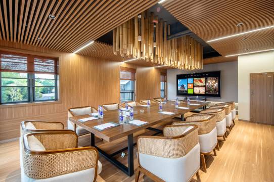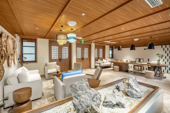 院子占地面积约3.8万平米,建筑面积9000平米,其设计依照巴渝村落肌理形态,结合场地条件,融入地域化的本地艺术元素,极具山地文化特色。该村落由10栋别墅组成,拥有豪华套房、特色亲子房、豪华标间等各类型房间,可容纳400人就餐,120人开会,有特色中餐厅、豪华包房、棋牌茶艺、多功能会议室等配套休闲娱乐设施。该项目的建成投用将增强长寿湖的度假康养功能,是休闲度假、康养旅游、商务会务、工会团建等的理想之选。