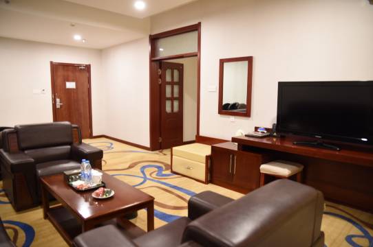 性价比极高,房间宽敞明亮干净整洁,早餐丰富,干净卫生,品种多,价格美丽,前台服务热情周到,下次有机会再来额济纳旗一定还会选择他家。