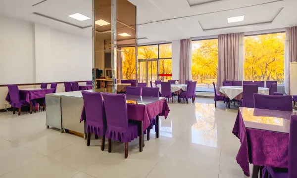 国庆假期,额济纳旗的房间都比较贵,在携程上搜索了很多酒店,怀着忐忑的心情最终预定了这间酒店。游完胡杨林来入住,发现拉开窗帘正对着胡杨林,,感到十分惊喜。房间干净整洁,相比其他千多元的酒店,价格不贵,老人孩子都满意。门口有停车场,停车方便,附近有很多饭店,步行两三分钟就能选到喜欢吃的饭菜。早上,特意在太阳升起时看胡杨林。晚上,有路灯照射胡杨,也很美。前台的两位大姐姐,非常热心,让我感到温暖。我觉得,如果不追求非常精致的大牌装修,这里其实是挺好的选择,也是能让大多数人都满意的地方。