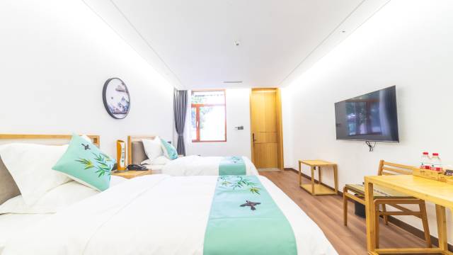 房间特别干净,虽然在在竹林里,但房间内没有蚊子,空气清新,早餐好吃,店员很友好,我们带小朋友去的,店员还帮忙拿行李。
