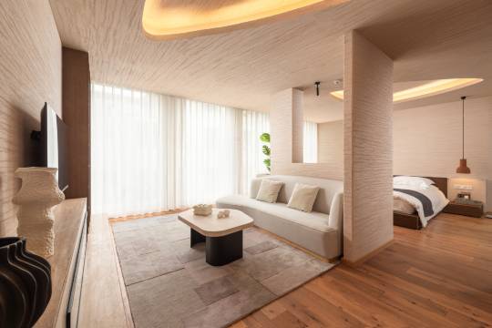 民宿一共设有多间房间。整体是让人舒适温暖的现代风装修,简约但细节考究,不枉一住的“浮生半日闲”。