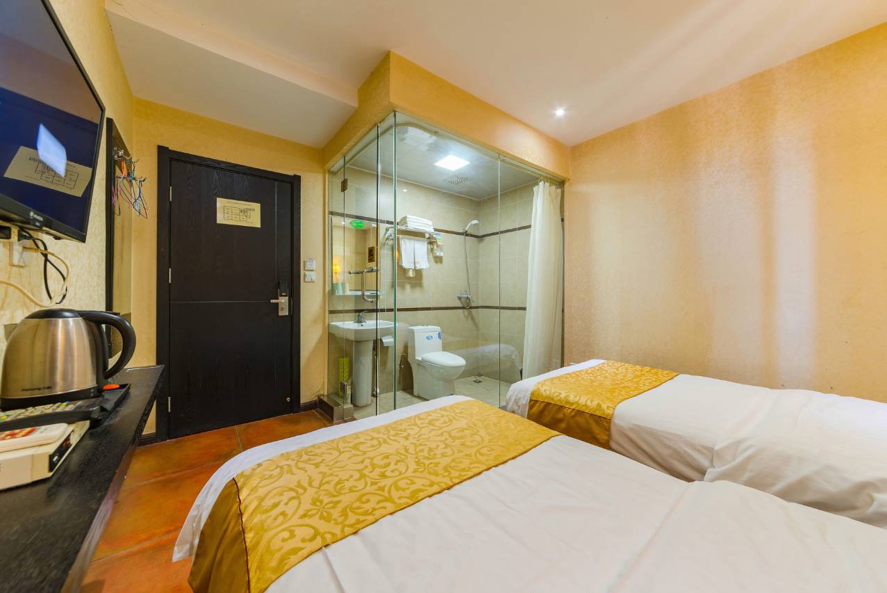 本店全部标间配置:电视柜、电视、空调、独立卫生间、24小时热水淋浴、拖鞋、无线网络。床品(包括床单、被罩、枕头)确保一客一换。旅房间安静舒适、干净整洁,,24小时冷热饮用水供应,如家般温馨。宾馆真诚的欢迎您的到来,我们会用心做好服务,让您感觉到如家般的温馨,谢谢您对我们的支持!