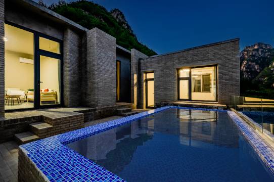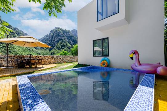房山也开始有中高端民宿了 环境好 设施新 真的30度恒温泳池 露台可观山 地下可玩牌 老少皆宜
