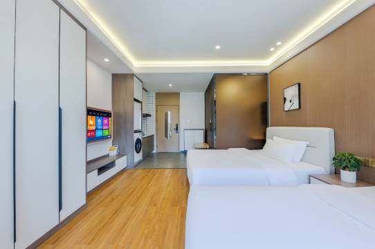 前台小姐姐很有耐心解答问题,也会推荐成都有名的景点,也会帮忙给我们查询地址,服务很好!停车问题不用担心,有停车场,入住期间是免费的,只是每次出去的时候需要再前台扫一个停车票。不麻烦得还是很方便的!晚上睡觉的很安静,酒店旁边都是小区的,不用担心被打扰!房间里有空调和网络,卫生很干净,设施都很齐全。楼下里部有个菜市场,坐火车的时候可以提前买点水果和干粮。推荐!