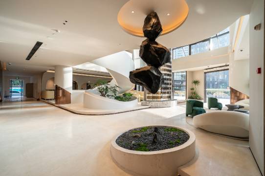 酒店位置十分便利,大厅装潢也十分具有艺术感。