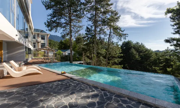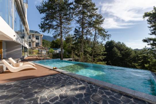 与全世界其他酒店不同的是,「花開半朵」酒店追寻融于景、小而精,天然纯朴又不失低调奢华。酒店内有臻品全景房、亲子房、无边泳池、养生药浴、星空酒吧、田间课堂等,更有扶摇直上的网红云梯一览大别山脉。酒店包厢设有道地美食“本草霍膳”,天景包厢可仰望蓝天、观星揽月。酒店以亲情服务为宗旨,为每位旅人提供宾至如归的体验,是您旅行度假、康养生息的不二之选。