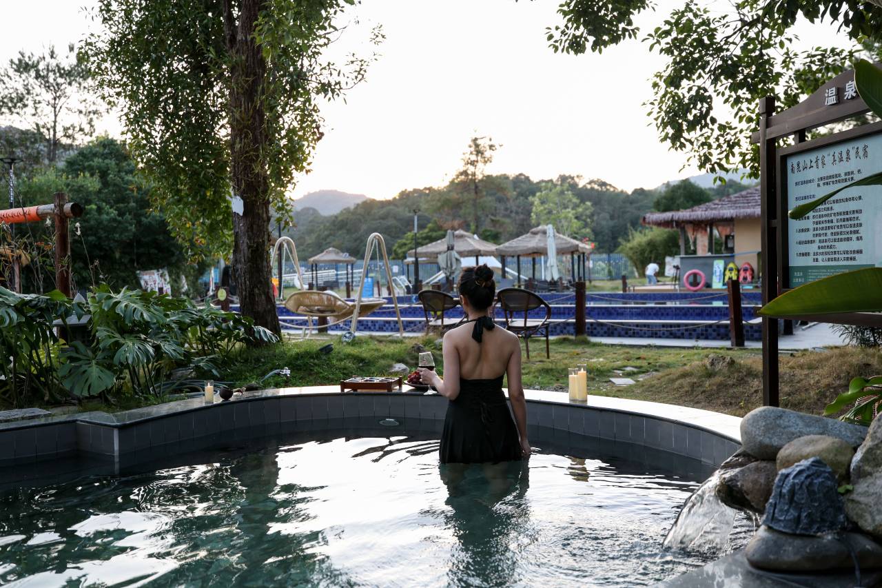 晚上可以泡泡温泉,露天ktv还可以喝点小酒^ ^
