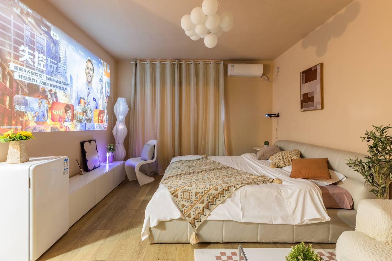 在陈家祠地铁站万科新领域、地理位置就没得说.去北京路上下九也算方便,沙面西关感受老广州。房间相比较之前住的大了些许,在这个地段算很不错的了,公寓楼。投影仪也还好,洗衣机出行洗一下方便。唯一不好的就是临街,楼下可能太热闹,晚上要关死了窗户才能睡觉,不过也不影响出行选择