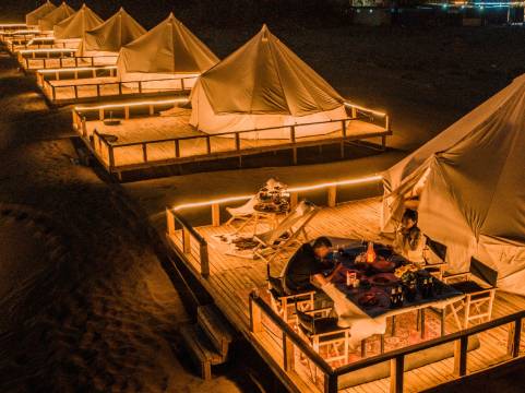 沙漠露营体验绝了!帐篷干净舒适,配套设施齐全。白天骑骆驼穿梭沙丘超刺激,傍晚邂逅绝美日落,夜晚围着篝火听领队讲沙漠故事,抬头就是璀璨银河。工作人员超热情,安排周到,强烈推荐!