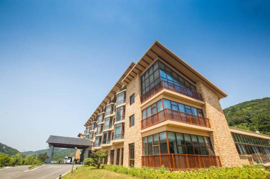 房间窗户能看到山景,满眼绿色,护眼又是天然氧吧,妥妥的山景房。还可以免费享受到游泳池,乒乓球等设施,超了自己的预期。停车区貌似不是很大,但是充电车位充足。如对应一房一车位,应该绰绰有余。感觉也是类似禅宗式的酒店,应该开业到现在有一段时间了,设施微有年代感。