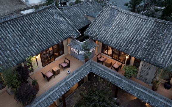 “四合五天井-跑马转角楼'一个大院、四个天井,前花园、后花园、两条巷弄古道将大理白族传统古建筑完整呈现。