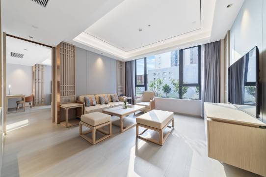 带孩子去方特玩随便定了个酒店,让我很惊喜。首先卫生很好,从卫生间到房间死角卫生都很棒,其次楼道宽敞并且装修风格也很有格调,房间面积也很大,沙发茶几书桌各种设施齐全,并且房间隔音也不错,很安静,需要什么跟前台沟通立马送过来,送东西的是机器人小朋友很新奇。房间也很智能,早餐种类虽不多,但口味不错也干净。总之这次入住意外之喜,好评好评。