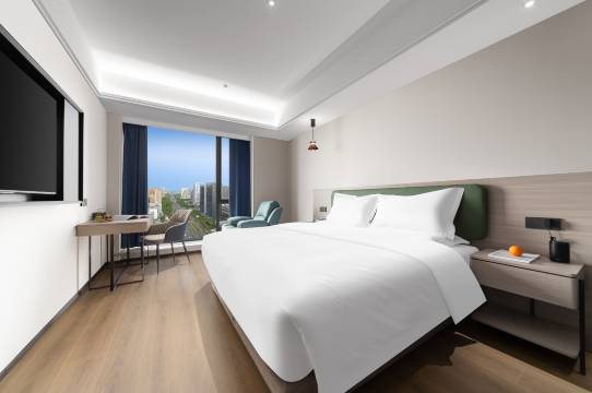 房间住的很满意,房间很干净,前台还给做了免费升级,房间很宽敞,楼下有公交,还有地铁,交通出行也是特别的方便,而且距离高铁站也是特别的近,不管是旅游还是出差,交通都很方便,酒店前台还准备了热的红枣茶,还有热的矿泉水,很很暖心,前台服务周到热情,很不错的酒店,真的很推荐