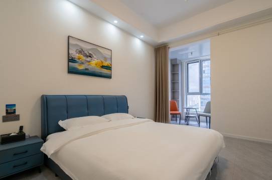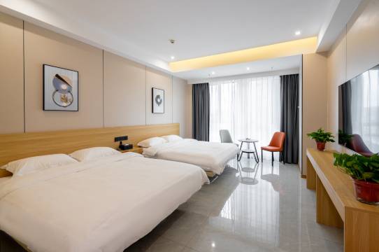 房间大,干净整洁。位置离高铁站近。很方便周围饭店商场很方便。房间标间。很温馨。有呼吸灯,窗帘是半自动化的。很好整体。