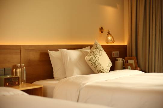 🛋️房间设计简约而不失温馨,原木色的家具搭配柔软的床品,还特地准备了颈椎枕,睡不习惯可以换。