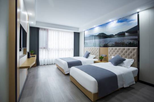交通极其便利,附近吃饭也方便,离大九湖入口近在咫尺,感谢老板给升级了家庭房,房间带阳台,拉开窗帘就是群山环绕,五星推荐